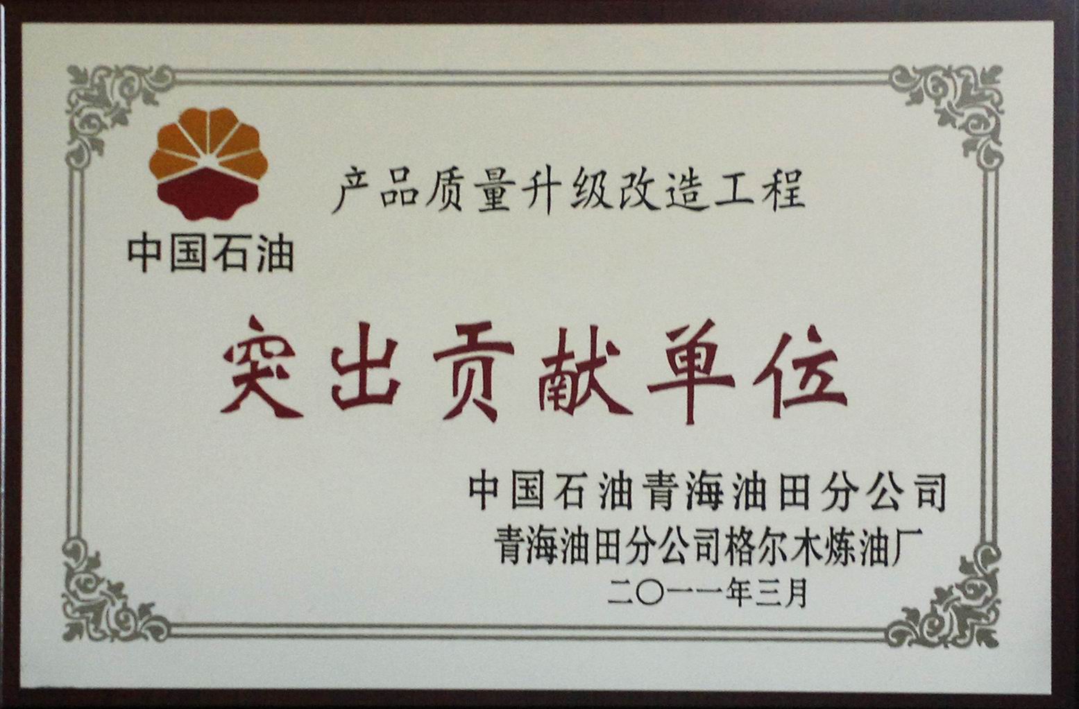 2011年中石油突出貢獻單位(格爾木煉油廠)