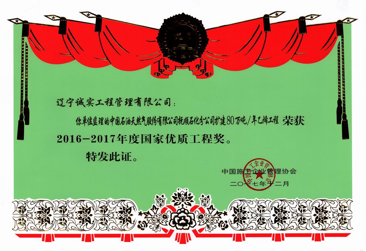 2016-2017年國家優(yōu)質工程獎(撫順石化擴建)