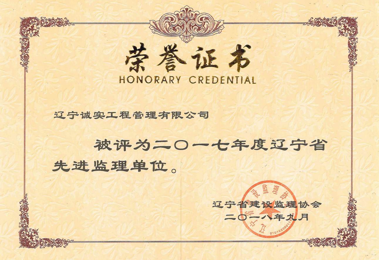 2017年度遼寧省先進監(jiān)理單位