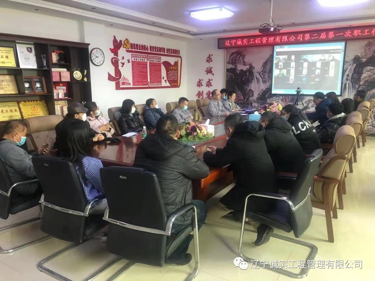 2021年2月9日早9:30在公司一樓會(huì)議室召開(kāi)了遼寧誠(chéng)實(shí)工程管理有限公司第二屆第一次職工代表大會(huì),由于工作原因,一部分職工代表無(wú)法回?fù)幔頃?huì)結(jié)合線上、線下共同召開(kāi)。共計(jì)40位職工代表,實(shí)到會(huì)議37位(其中線上17位,線下20位)。出席此次會(huì)議的領(lǐng)導(dǎo)有:總經(jīng)理田立奎、副總經(jīng)理任潤(rùn)東(美亞項(xiàng)目總監(jiān)理工程師)、副總經(jīng)理鄧戎龍。