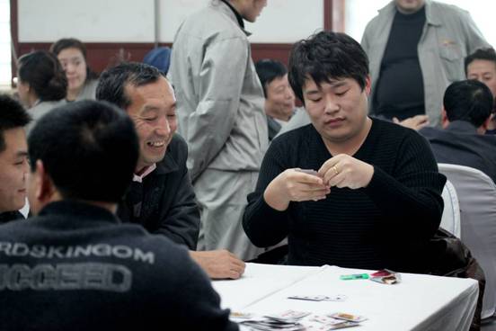 公司員工在進行撲克比賽