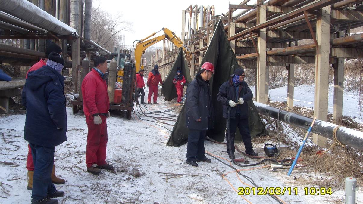 監(jiān)理人員檢查管線補口質量