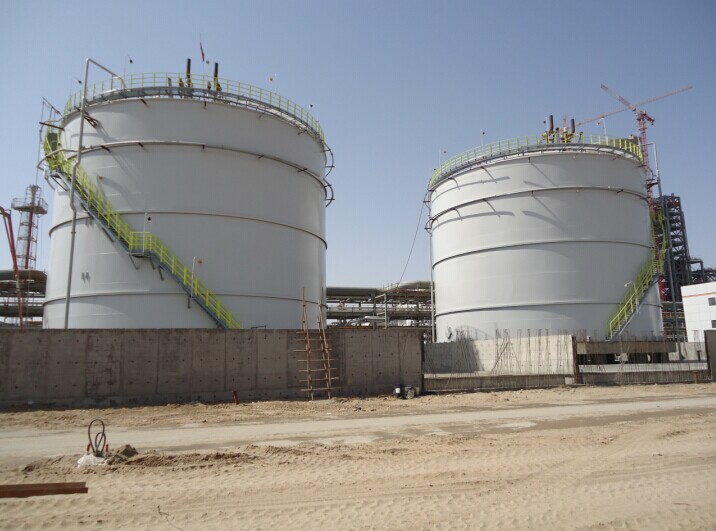 刷好外漆的兩臺氨罐